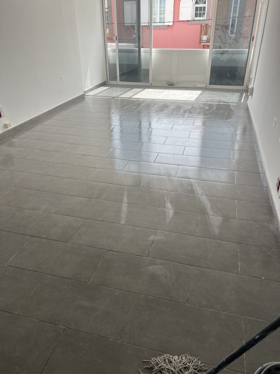 Reforma de una oficina, refilo de las paredes, colocación del suelo y pintura.